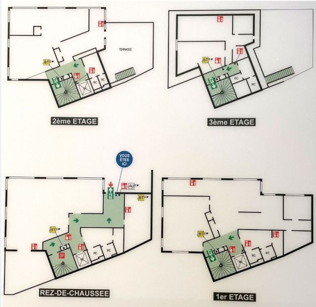 Salles de réunion, espace de repos avec cuisine aménagée, sanitaires homme/femme, douches.