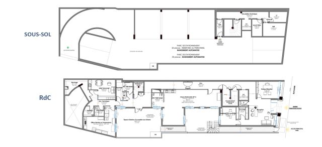 De forme rectangulaire, il offre des plateaux composés dun grand open-space en façade sur rue, suivi par des espaces de travail cloisonnés ou ouverts.