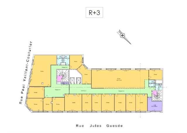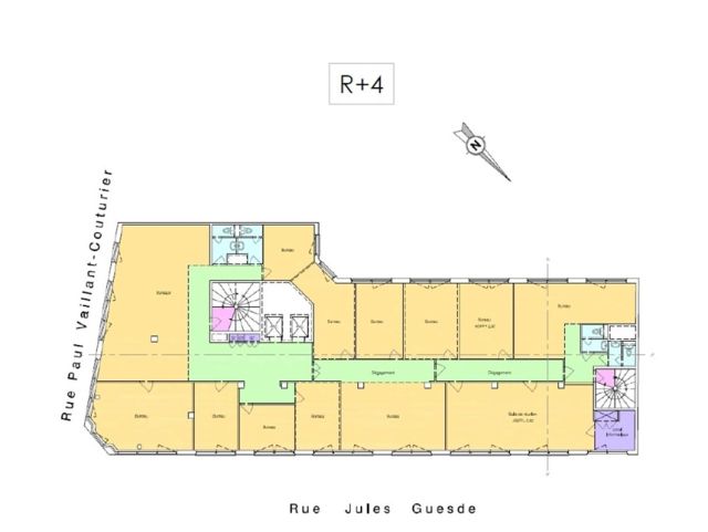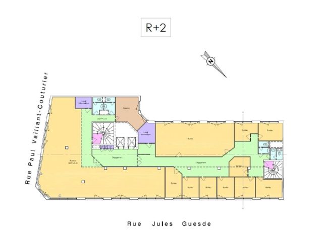 Au RDC, 2ème, 3ème, 4ème et 5ème étage, 2 080 m² de bureaux lumineux, en premier jour, divisibles, répartis en plateaux flexibles mixant espaces ouverts et bureaux cloisonnés.