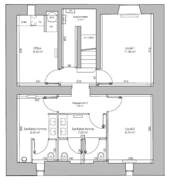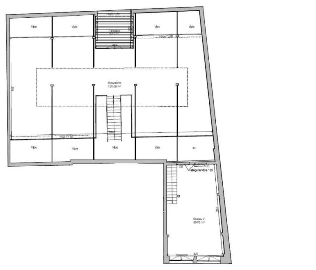 Immeuble indépendant de 623 m² de bureaux répartis en espaces ouverts et cloisonnés.