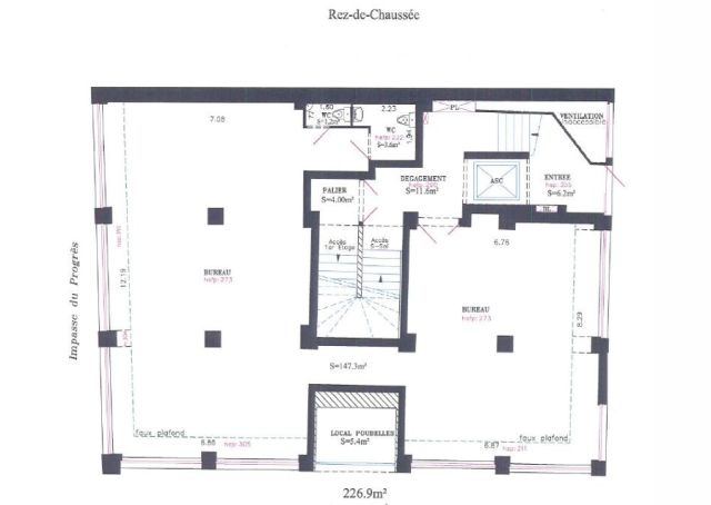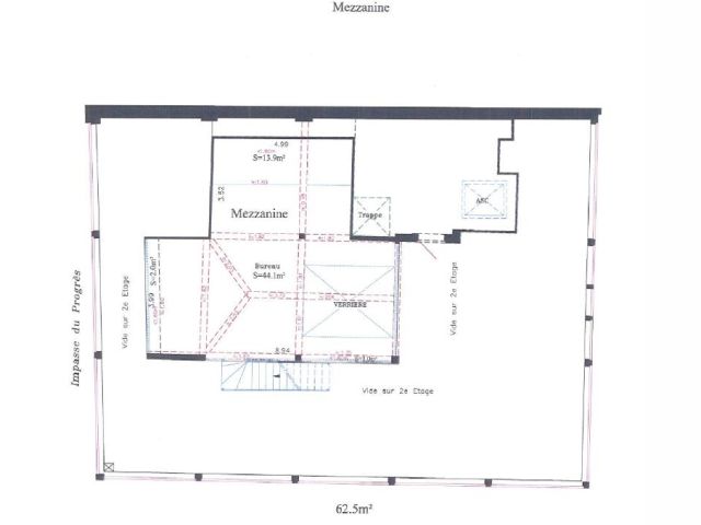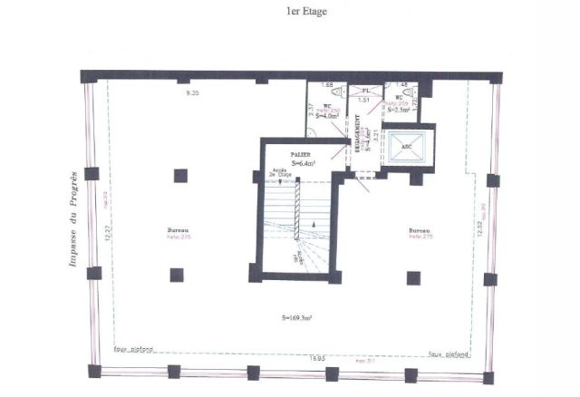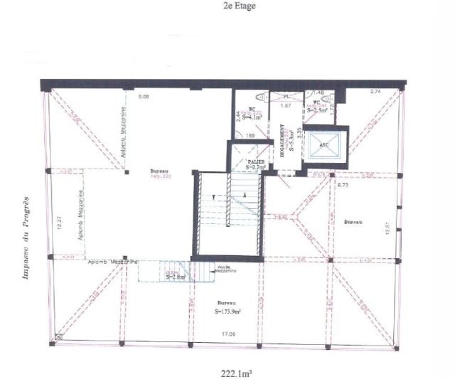 En R+2 avec mezzanine et sous-sol, 975 m² de bureaux atypiques lumineux répartis en espace ouvert et sous sol aménagé.