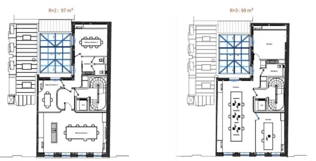 En R+5, 647 m² de bureaux répartis en plateaux modulables d'envion 100 m².