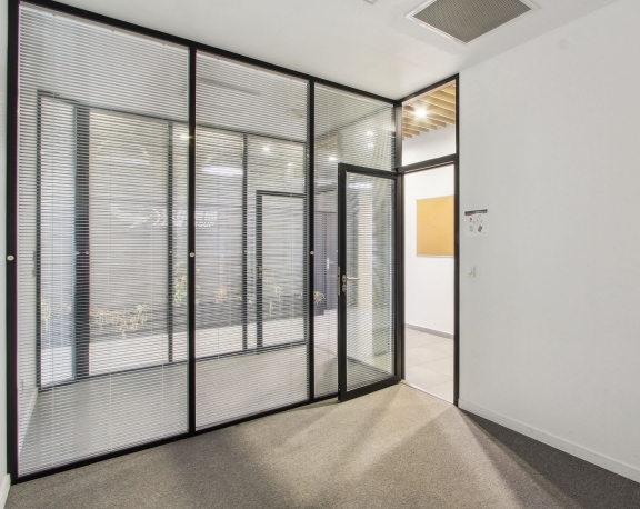 Au rez-de-chaussée, 190 m² de bureaux répartis en un espace ouvert, 4 bureaux cloisonnés, 2 salles de réunions, cuisine équipée.