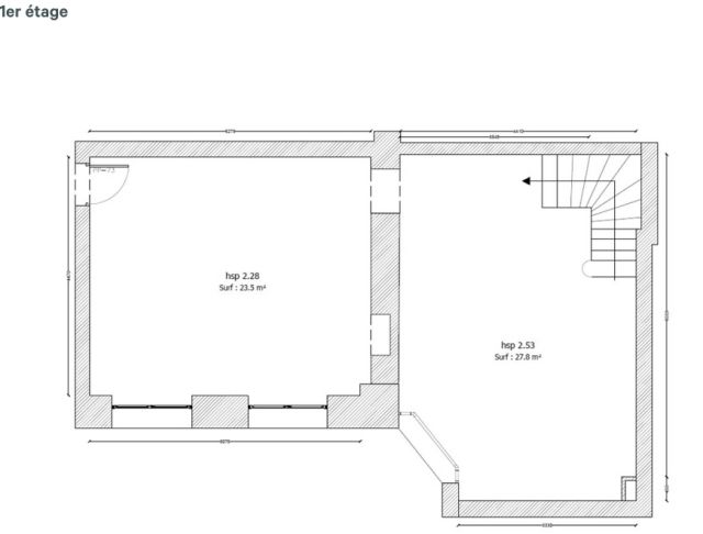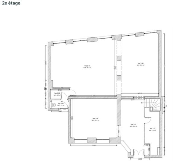 Aux 1er & 2ème étages,179,70 m² de bureaux répartis en espaces ouverts ou cloisonnés.