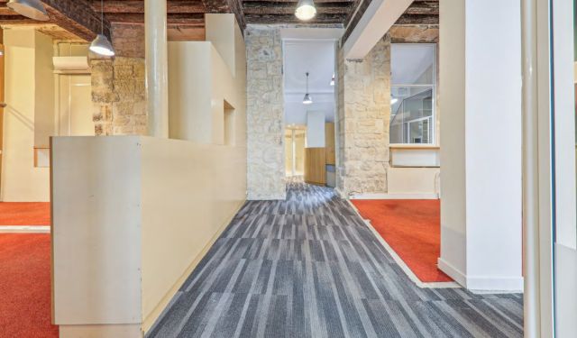 En R+2, 277 m² de bureaux répartis en espaces ouverts et cloisonnés.