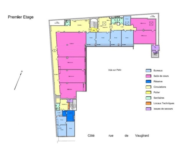 Au rez-de-chaussée et 1er étage, 1 399 m² de bureaux répartis en espaces ouverts et cloisonnés.