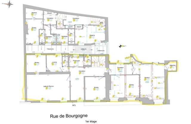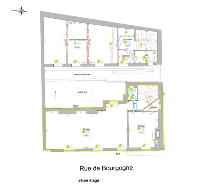 Le bien à usage exclusif de bureaux développe deux niveaux au-dessus du rez-de-chaussée.