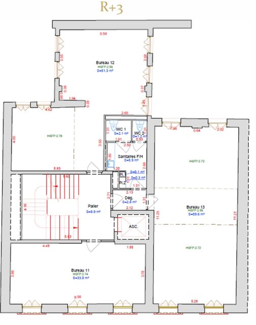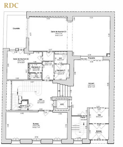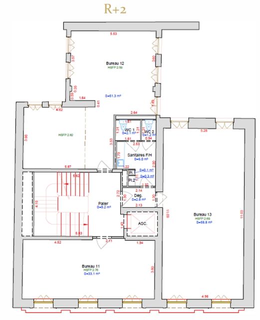 En R+4, 1 159 m² de bureaux répartis en plateaux lumineux et flexibles denviron 170m² du RDC au R+3, disposant dune hauteur libre de 2.70 m.