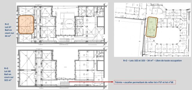 Lot n° 67 : dispo immédiate partielle ( sauf 44 m² cf plan ci-après Libre de toute occupation au + tard 31/12/2026 ou après accord / résiliation amiable)