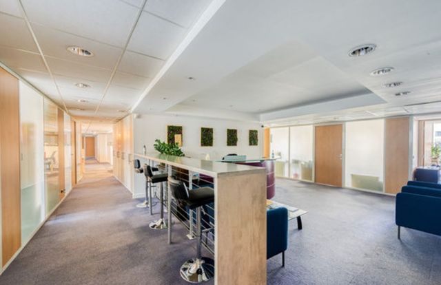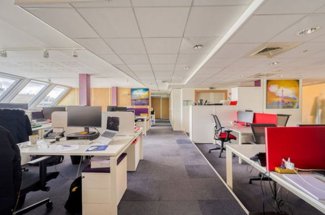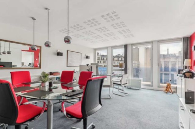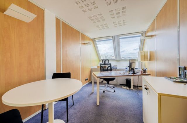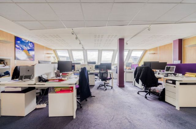 En étage élevé, 479,55 m² de bureaux répartis en espaces ouverts et cloisonnés.