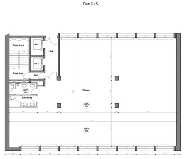Au 5ème étage, 235 m² de bureaux traversants et très lumineux, répartis en open space.