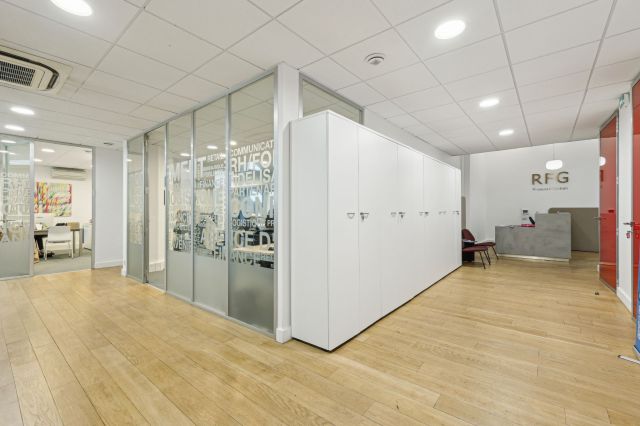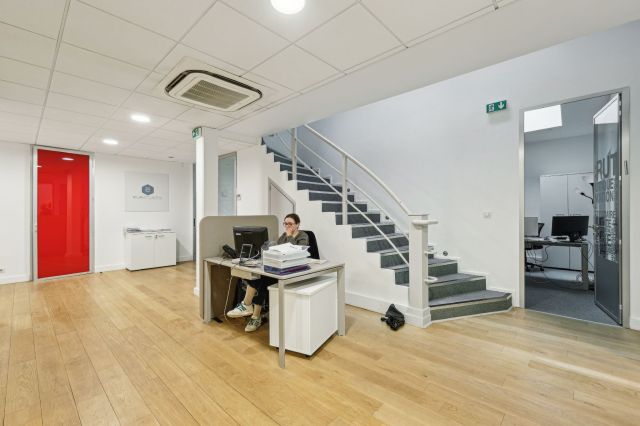 Au rez-de-chaussée et 1er étage du batiment C, pratiques et fonctionnels, 322 m² de bureaux climatisés avec terrasses