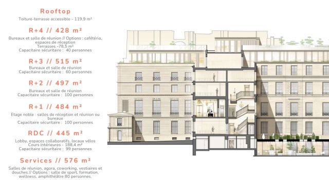 Limmeuble sera entièrement réhabilité et atteindra un niveau dexigence élevé, tant sur le plan environnemental et architectural, que sur le plan du bien-être de ses utilisateurs.