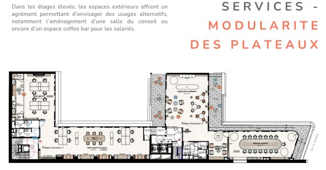 Des espaces de services et de nombreuses salles de réunion ont été spécialement conçus pour offrir des fonctionnalités complémentaire