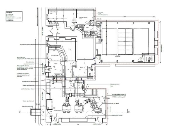 Au rez-de-chaussée et sous-sol, 350 m² de bureaux répartis en espaces ouverts et cloisonnés.
