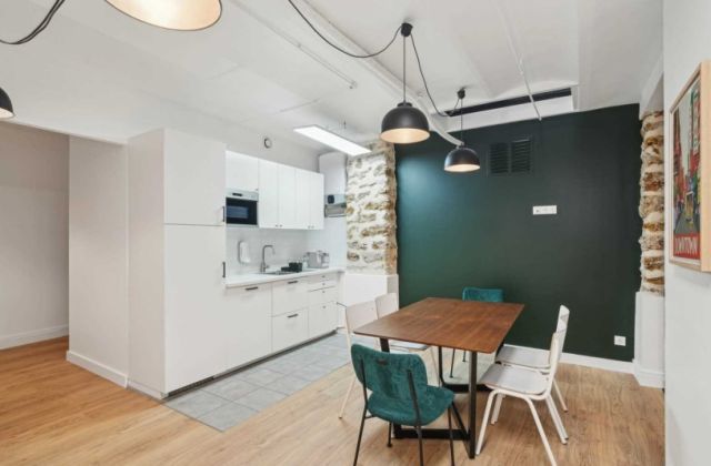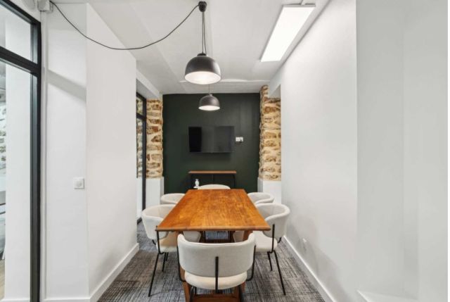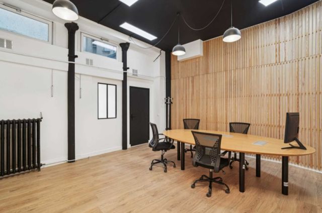 Au rez-de-chaussée et sous-sol, 234 m² de bureaux répartis en beuax volumes, espaces ouvert et cloisonné, 3 salles de réunion, cuisine aménagée neuve.