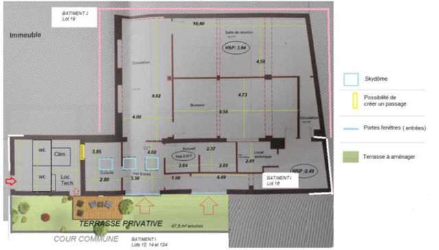 Surface entièrement décloisonnable. Nombreux puits de lumière. HSP : 3.94 m