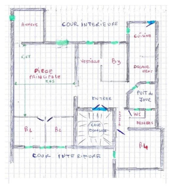 Les biens s'inscrivent dans un immeuble haussmannien édifié dans les années 1890, principalement constitué d'un bâtiment sur rue et cour.