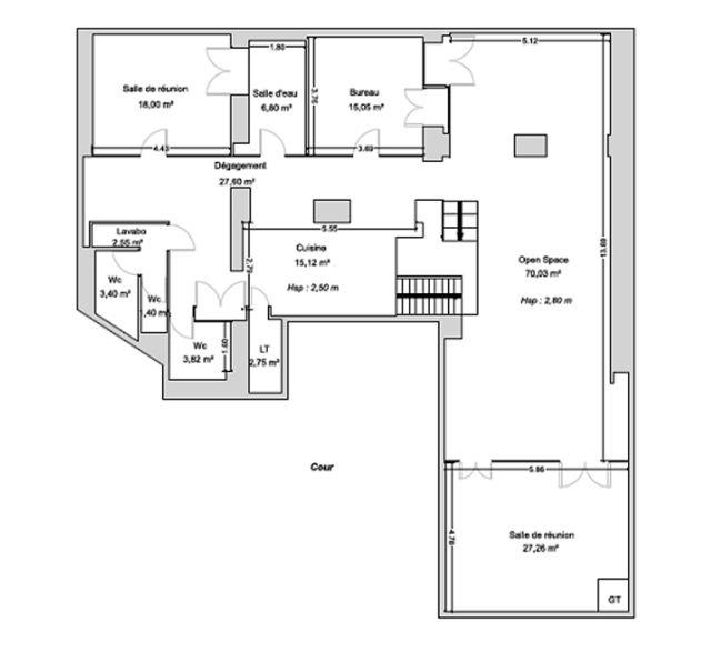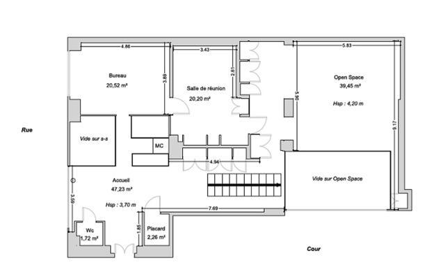 Au rez-de-chaussée et sous-sol, 328 m² de bureaux atypiques, répartis en 2 open space, 2 bureaux cloisonnés, 4 sanitaires privatifs, douche.