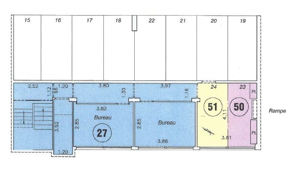 Sur 3 niveaux avec entrée indépendante sur rue, en rez-de-chaussée et sous-sol, 860 m² de bureaux et locaux polyvalents rénovés.