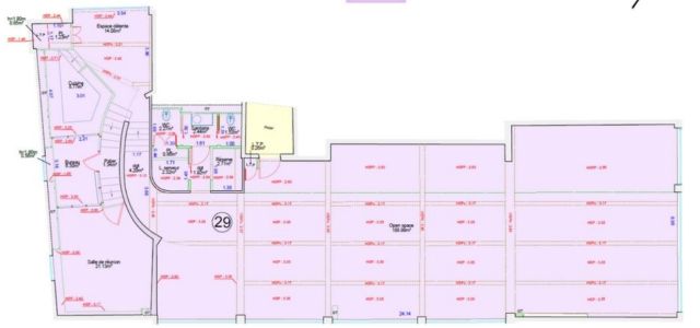 Au 3ème étage, 260 m² de bureaux répartis en 1 grand open space (environ 25 collaborateurs), 2 sanitaires, 1 cuisine et un espace « break », 2 salles de réunion (une de 2/3 personnes et une de 8 personnes environ).