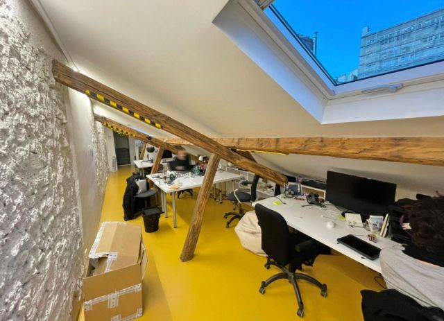 En R+3, 459 m² de bureaux répartis en espaces ouverts et cloisonnés.
