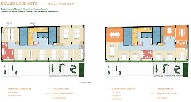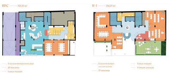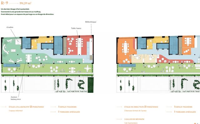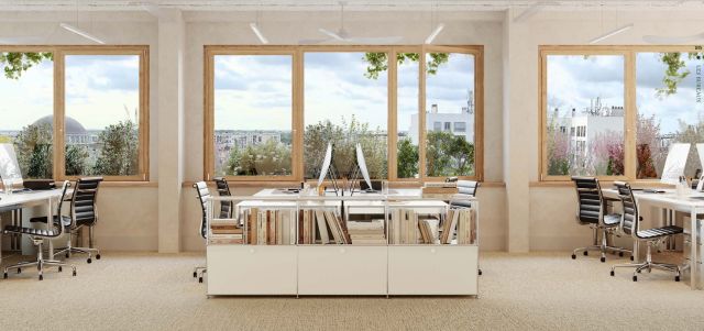 En R+9, 2 747 m² de bureaux lumineux répartis en espaces ouverts et cloisonnés.