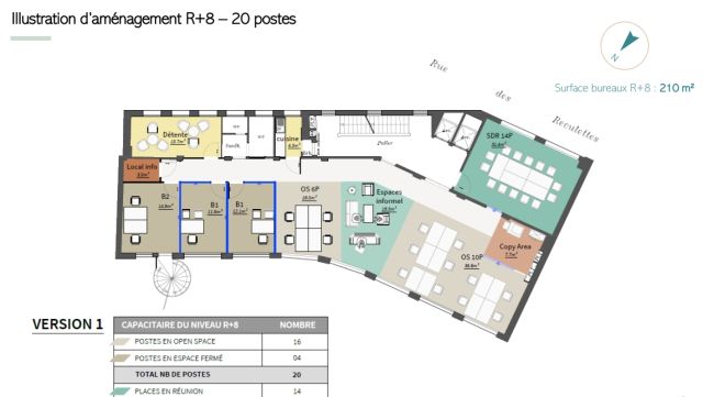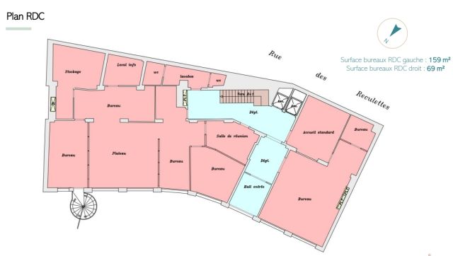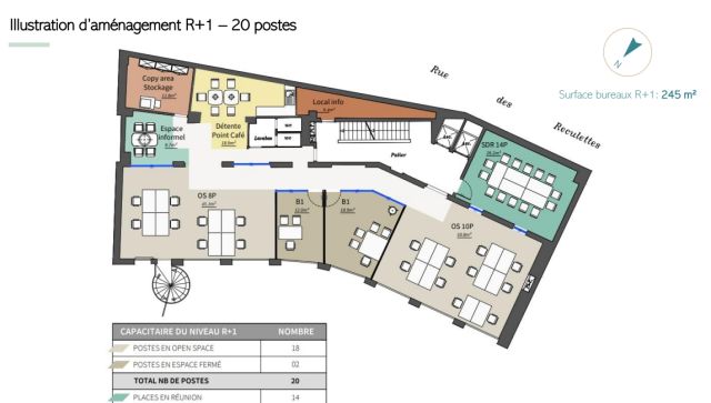 ERP possible de : 100 pers. au RDC et 19 pers. au R+1 (1 pers./4 m²).