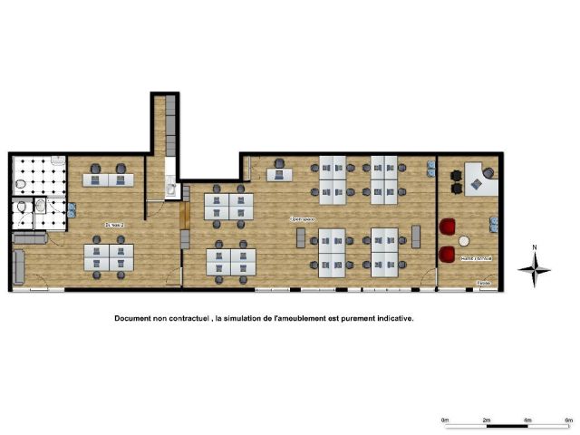 Locaux calmes et lumineux aménagés en espace ouvert et bureaux cloisonnés, salle de réunion, kitchenette.