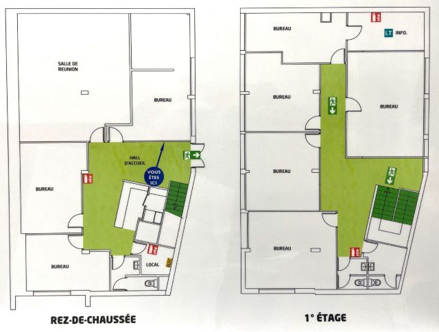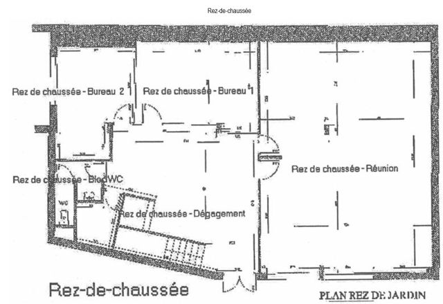 Au rez-de-chaussée et 1er étage, 320 m² de bureaux répartis en un accueil avec espace dattente, salle de réunion, local serveur climatisé, 3 sanitaires.