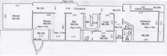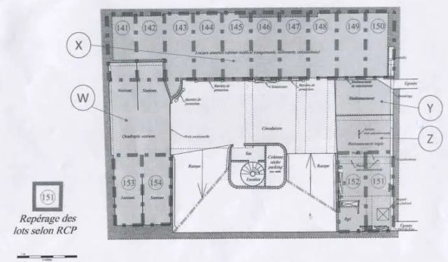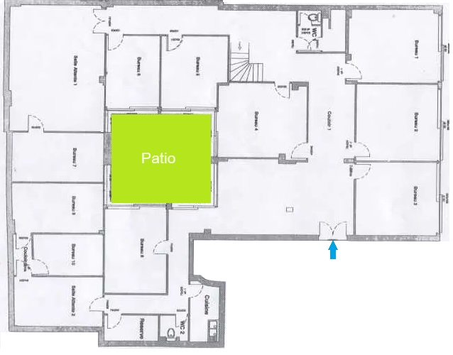 Au rez-de-chaussée, 293 m² de bureaux répartis en un accueil, 10 bureaux, réserve, cuisine et 2 sanitaires.