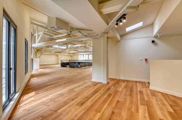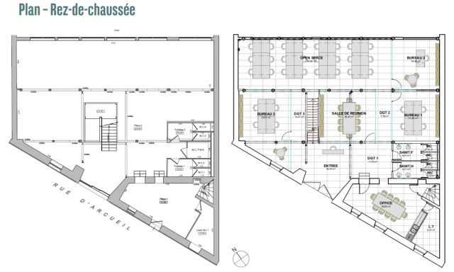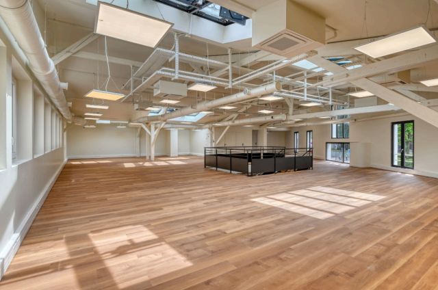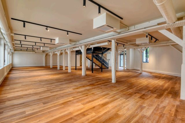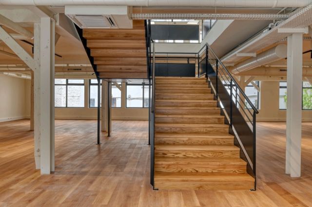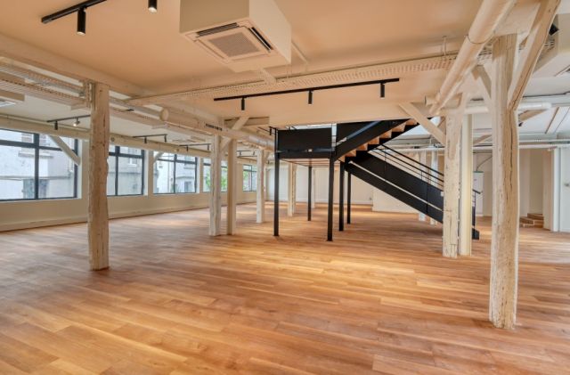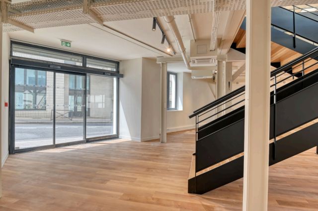 Au rez-de-chaussée et 1er étage, 560 m² de bureaux répartis en grands espaces ouverts.