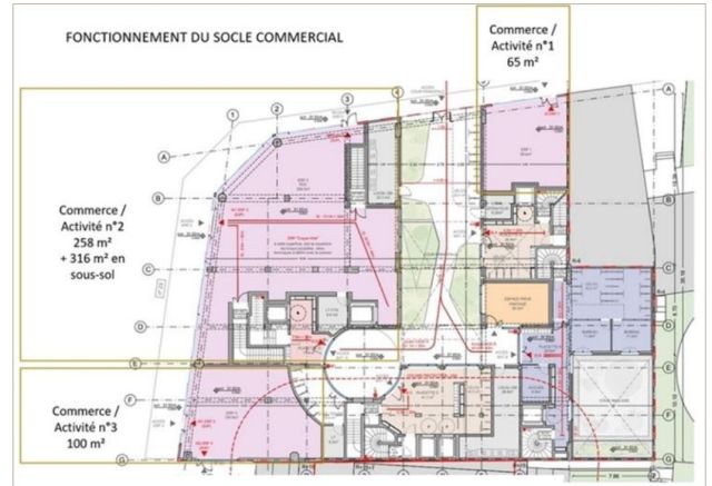 Au rez-de-chaussée et sous-sol, 739 m² de bureaux répartis neufs.