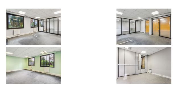 Au rez-de-chaussée et sous-sol, 211 m² de bureaux répartis en espaces ouverts et cloisonnés.