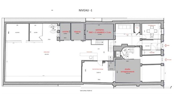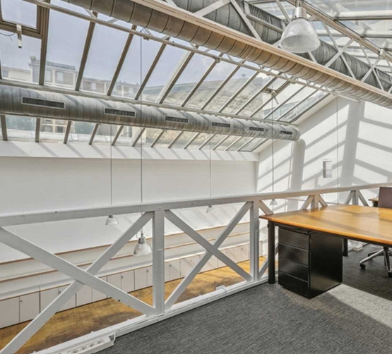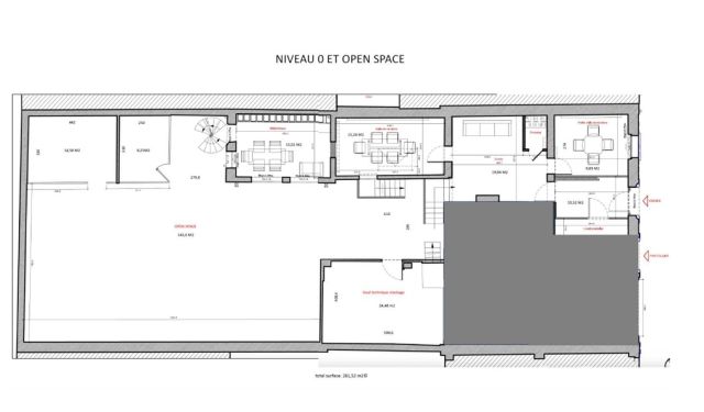 Au rez-de-chaussée et sous-sol, 365 m² de bureaux atypiques, lumineux et très calmes, répartis en espace ouvert.