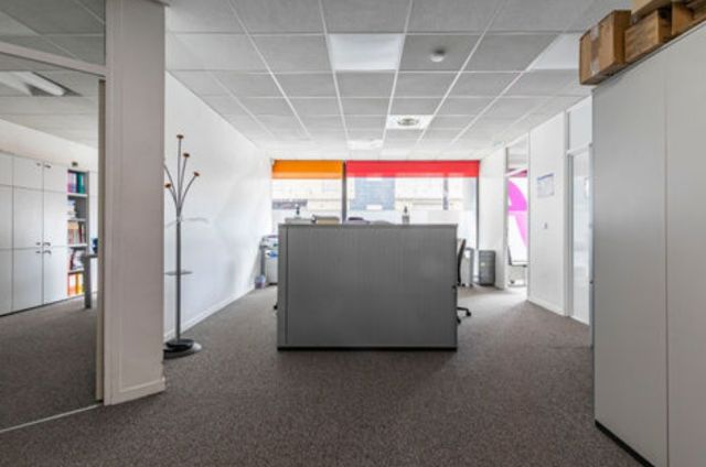 Moquette, parquet, faux-plafonds, doubles vitrages.