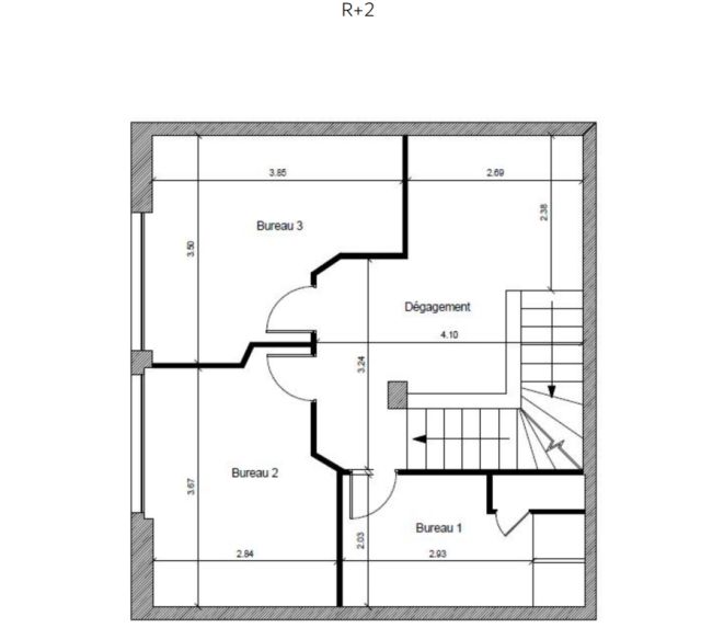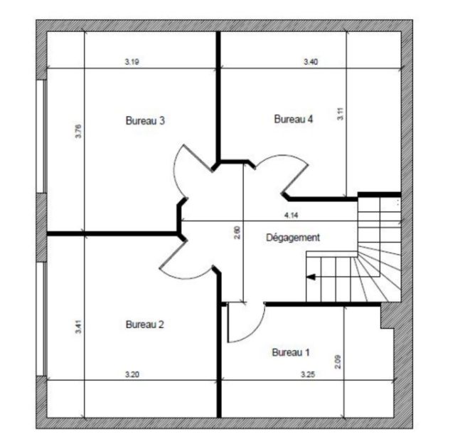 En R+3, 245 m² de bureaux répartis en espaces ouverts et cloisonnés.