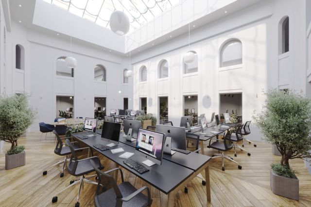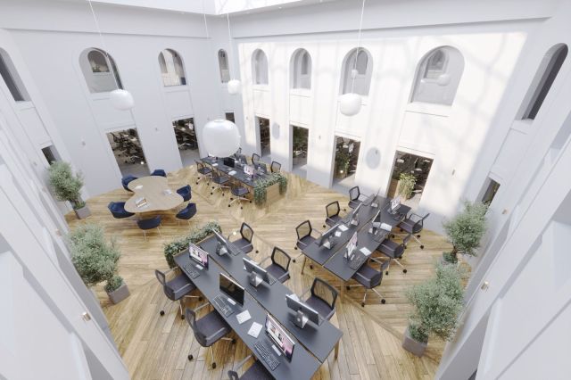 Sur 3 niveaux, 1.242 m² de bureaux répartis en espaces ouverts et cloisonnés.