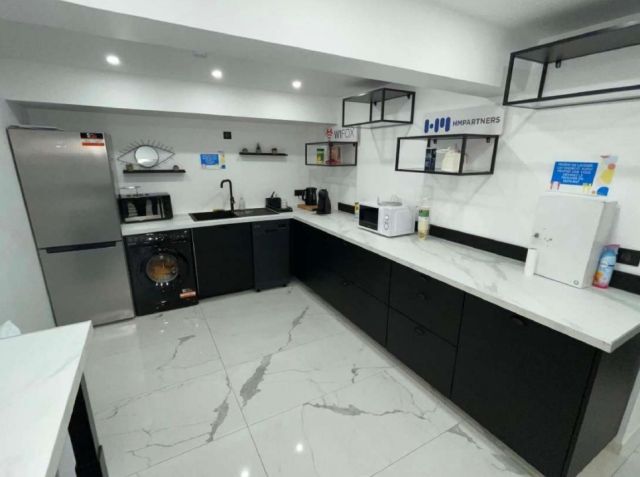 Au rez-de-chaussée, 382 m² de bureaux répartis en grand espace ouvert, salle de réunion, espace cuisine aménagé.