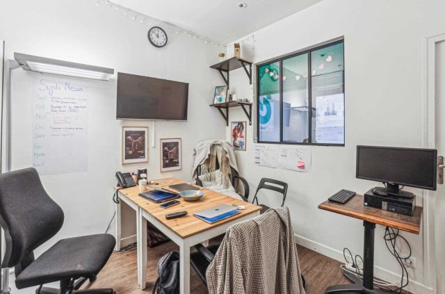 Au rez-de-chaussée, 136 m² de bureaux sur rue et sur cour, répartis en espaces ouverts et cloisonnés.