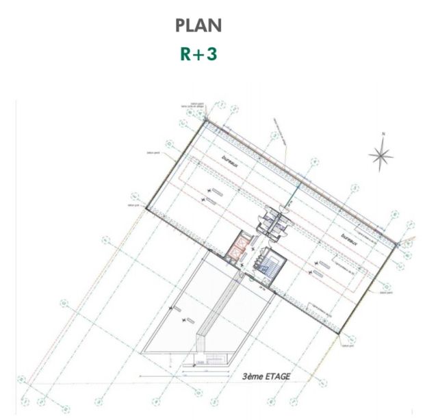 En R+4, 3 034 m² de bureaux répartis en espaces ouverts et cloisonnés.