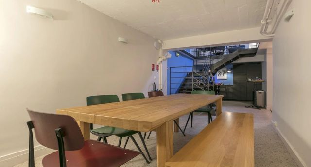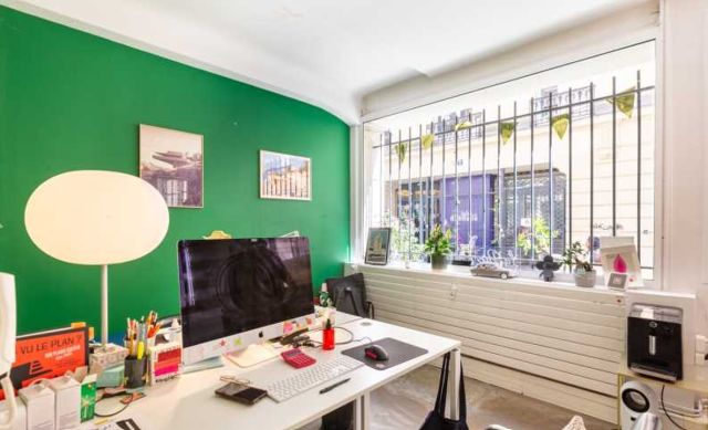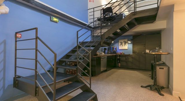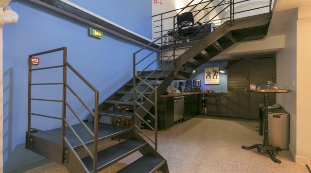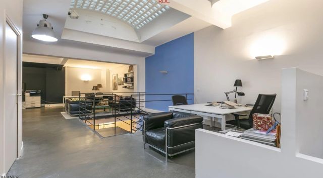 Au rez-de-chaussée et sous-sol, 309 m² de bureaux atypiques et indépendants, répartis en une surface lumineuse et flexible d'aménagement.