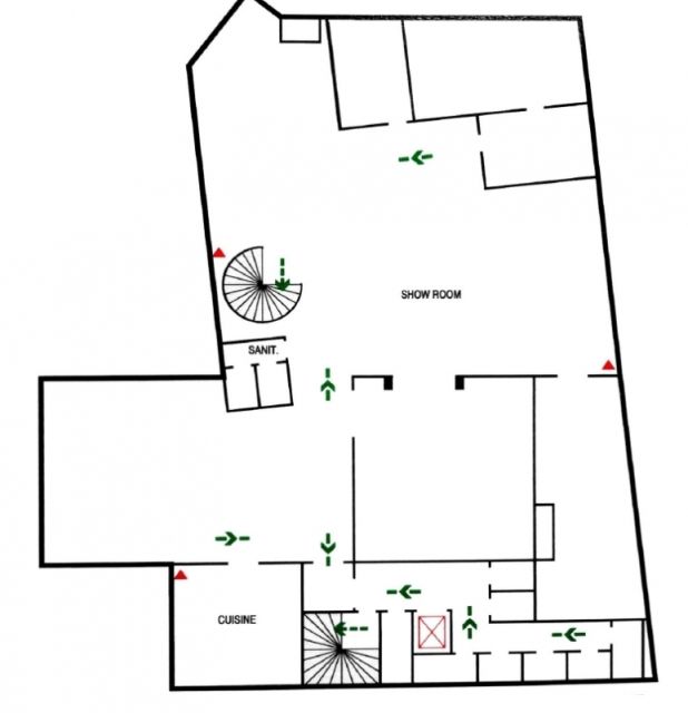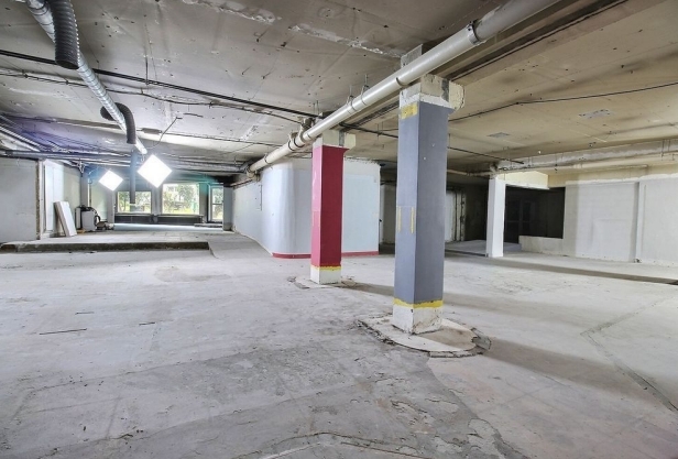 Surface en duplex (rez-de-chaussée / 1er étage) curée et aménagée en espace ouvert.
