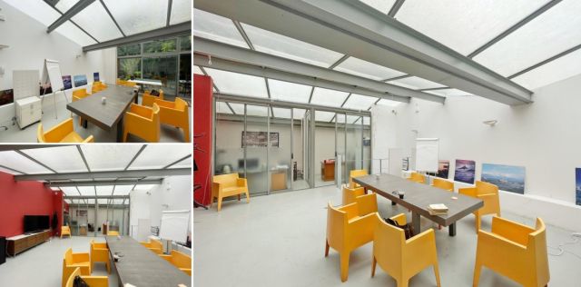 Espace réunion, salle serveur, cuisine avec espace de repos, 2 sanitaires.
